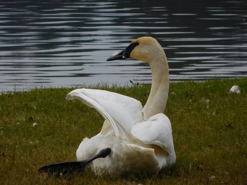 Trumpeter Swan preening – photo by M. Berch