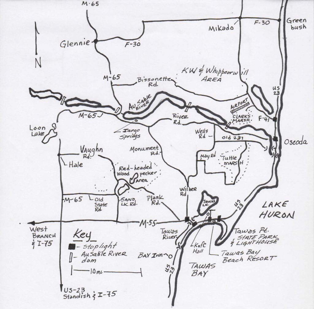 Overall Map of Oscoda and Tawas Area (Thanks to Larry VanWagoner)
