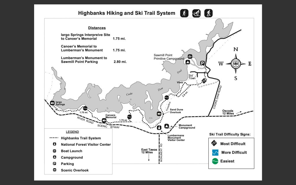 From Oscoda, take Old US 23 about 5 miles wet to Tuttle Marsh Road, turn left into the entrance road.